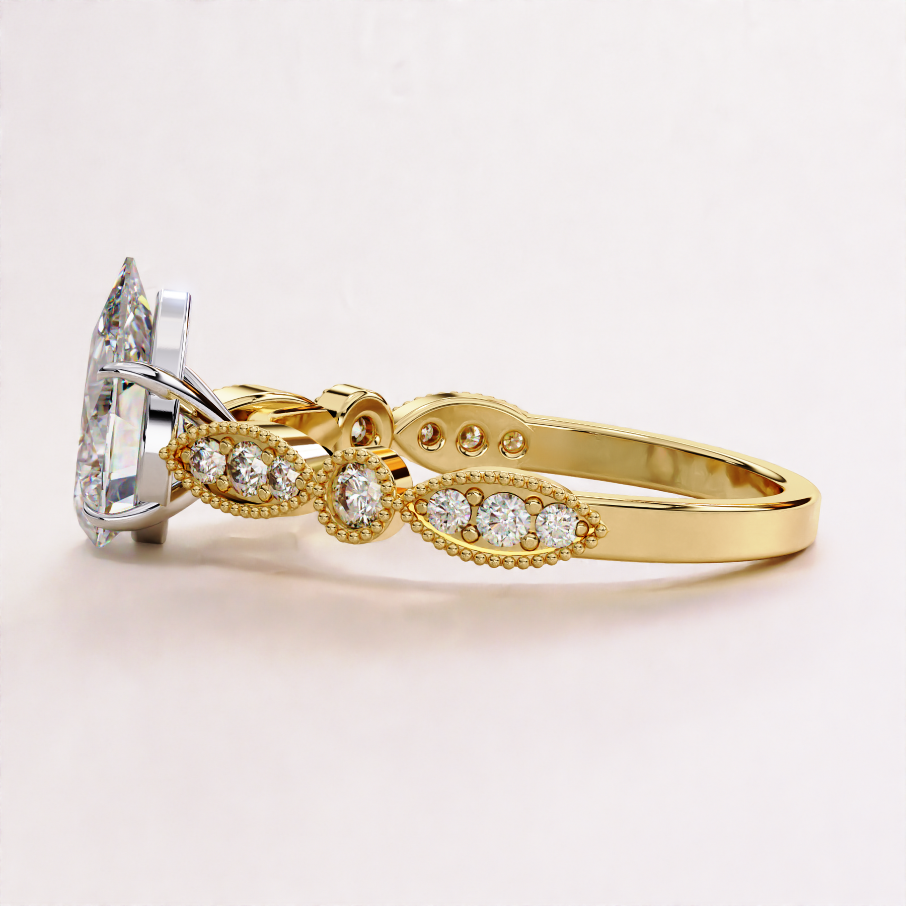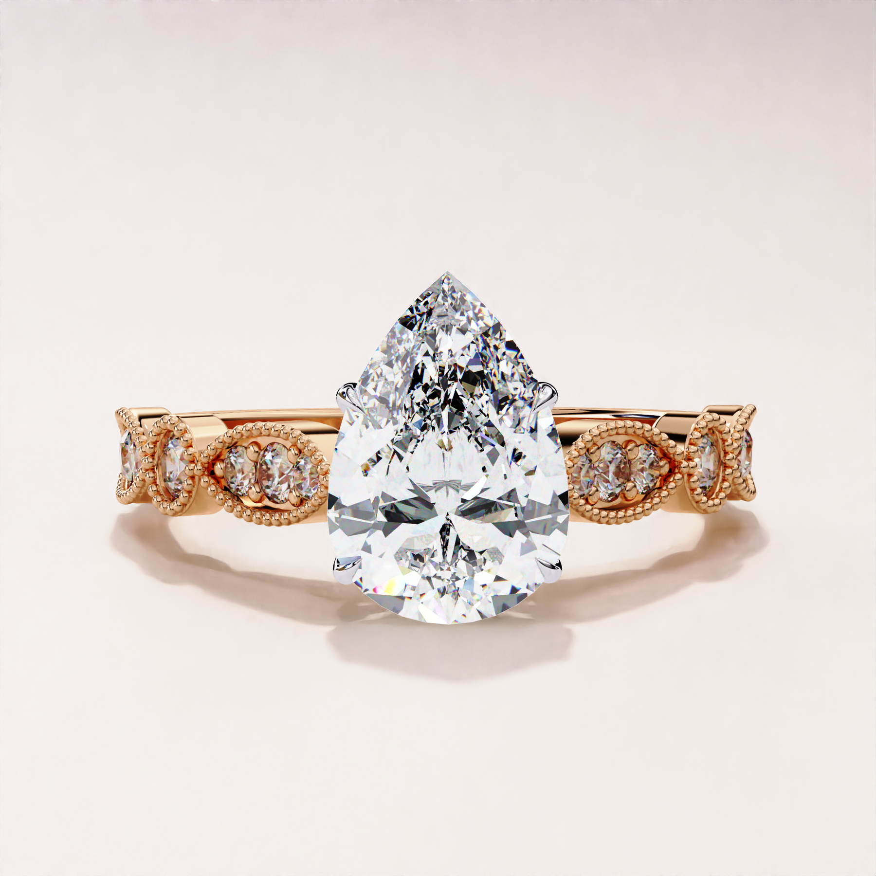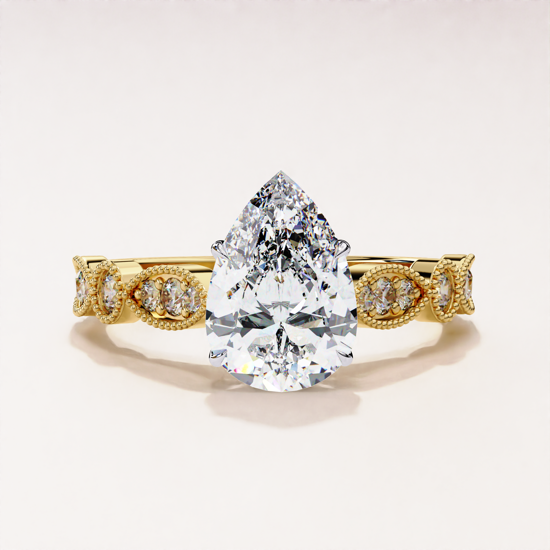 Elegant pear-shaped lab grown diamond ring featuring a hidden halo and floating pavé band. Crafted in solid gold, this sustainable engagement ring blends luxury with ethical brilliance — perfect for proposals, anniversaries, or as a timeless heirloom piece.
