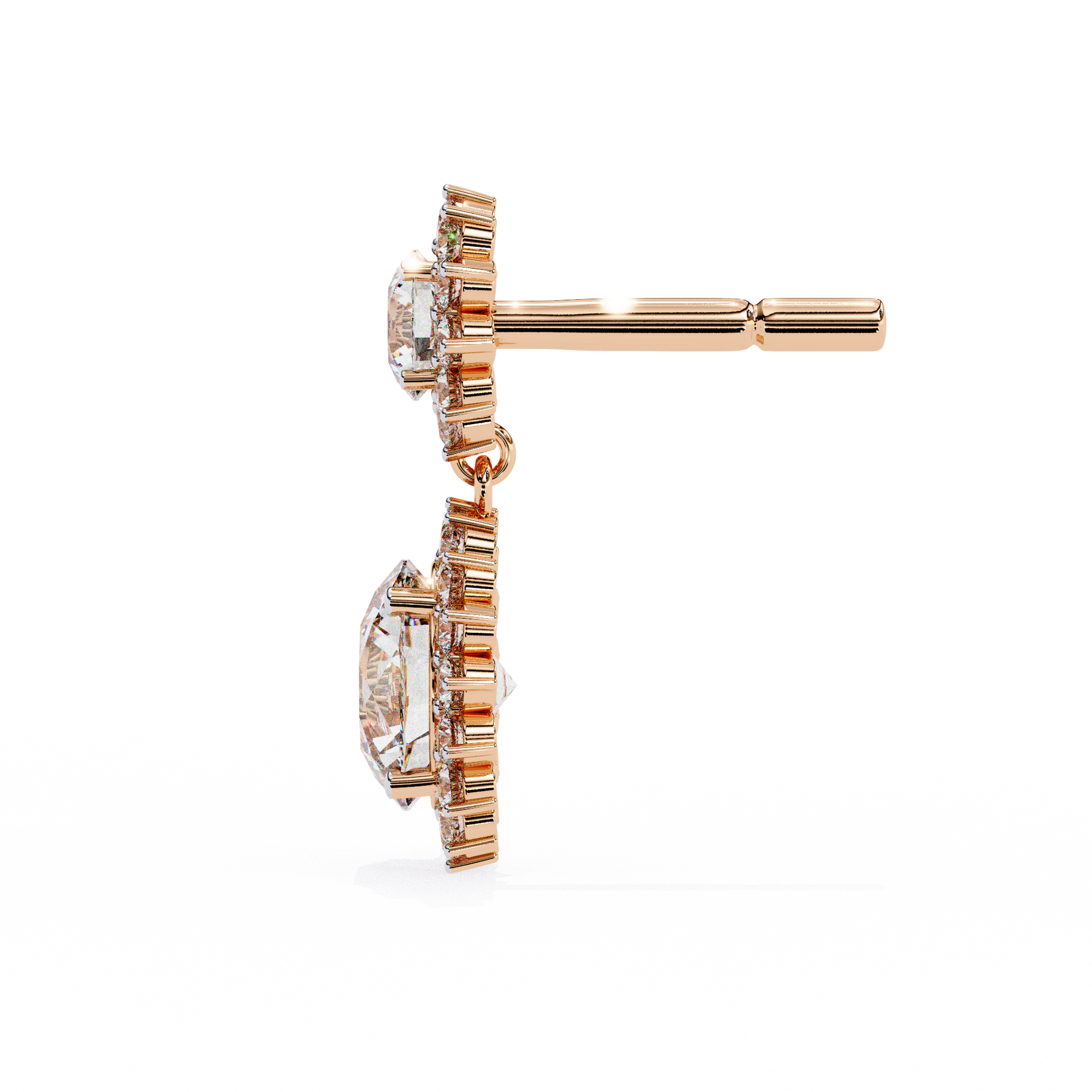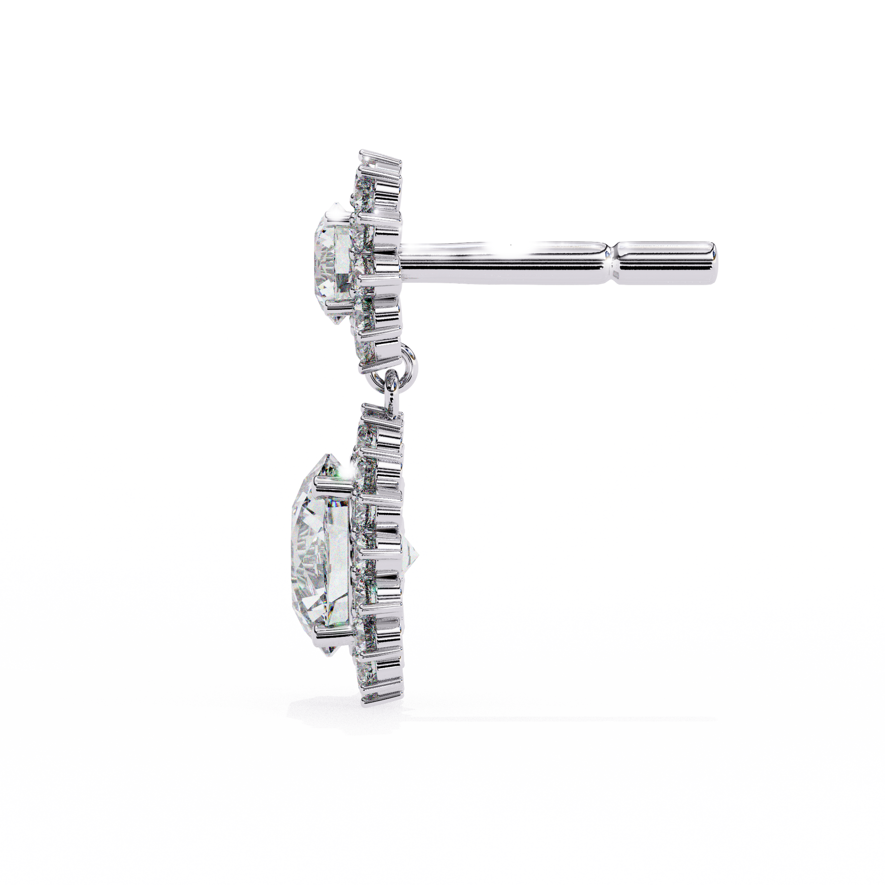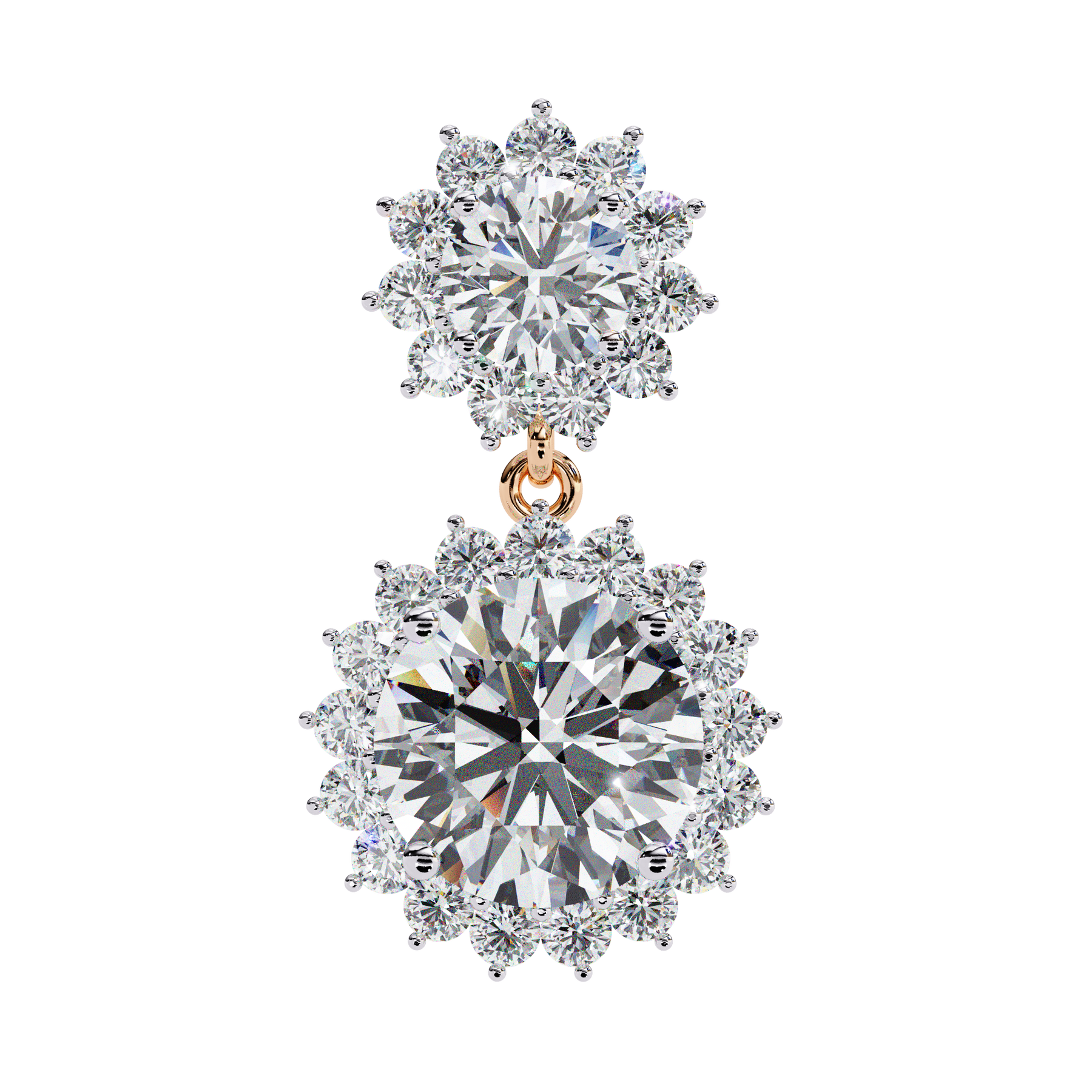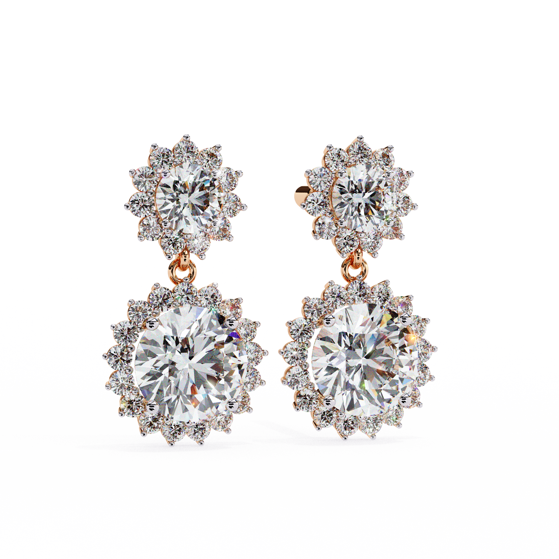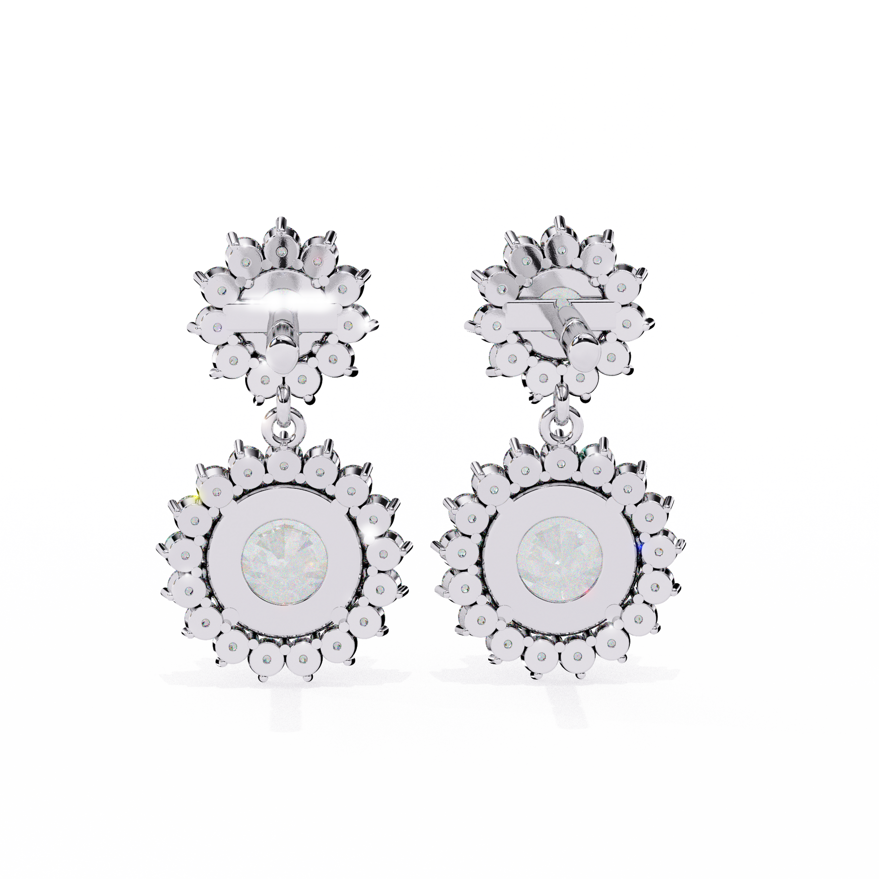 Round Lab Grown Diamond Floral Halo Dangle Drop Earrings